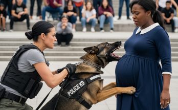A routine weekend afternoon at Riverside City Plaza turned tense on Sunday after a police K9 briefly lunged at a pregnant woman, prompting immediate intervention by the dog’s …