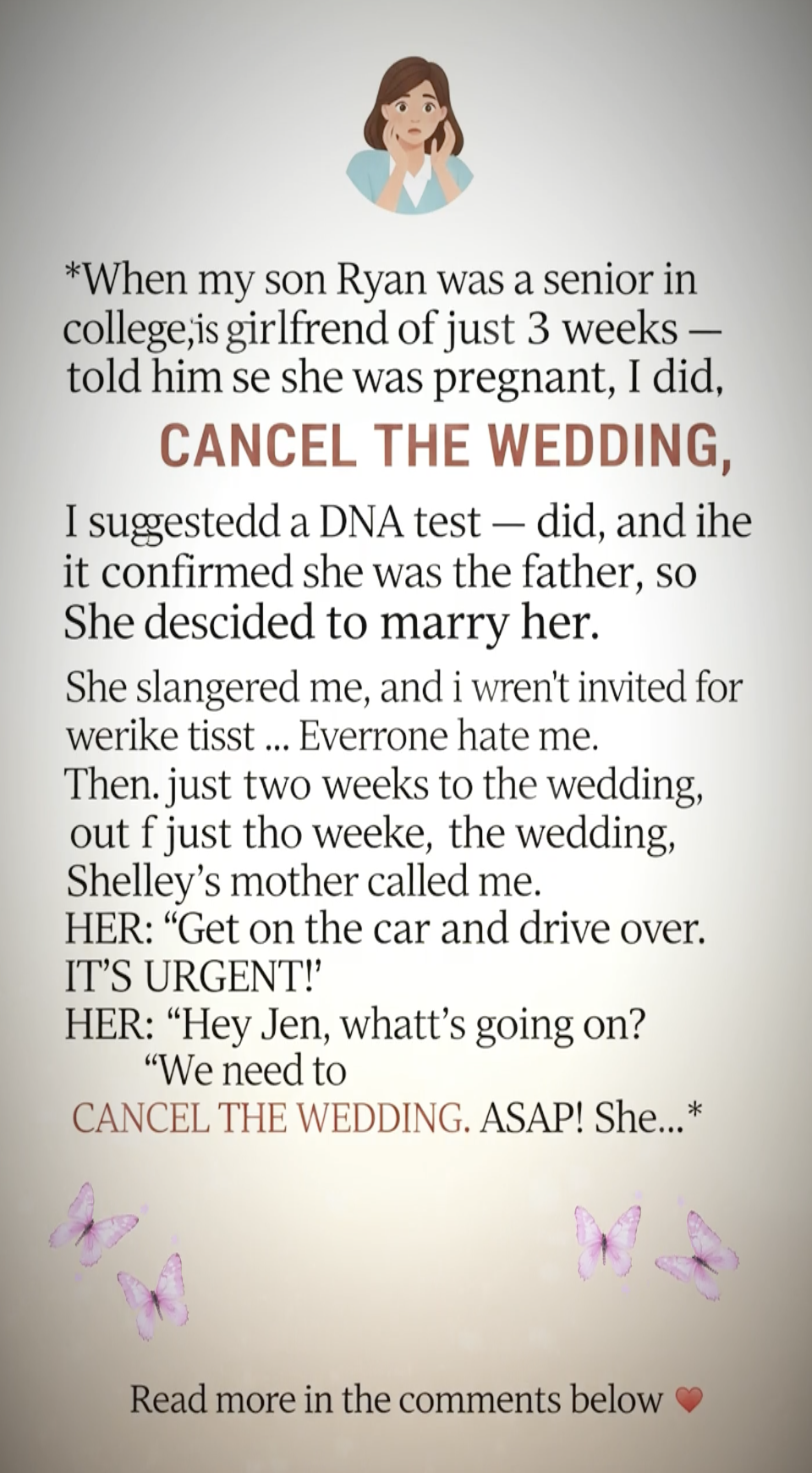 She then gave me a shocking revelation. Her words were urgent and hurried, and they held a weight that took me a while to comprehend. She exclaimed, “We need to cancel the wedding,” with such audacity and suddenness that it momentarily stopped me cold. “I discovered that Shelly had been lying all along. I am unable to let your son’s life be destroyed in this way.