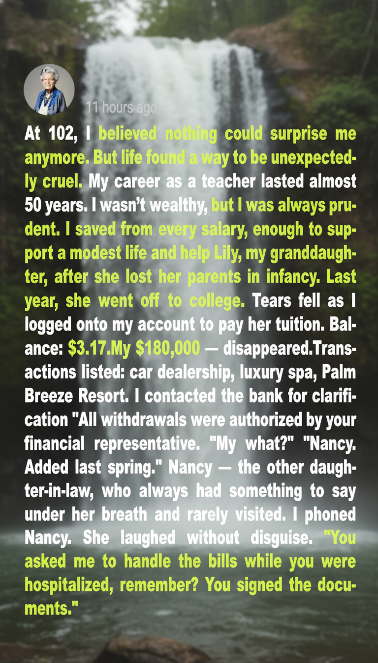 Now, at 102, I sit in my small room — a teacher, a saver, a believer in hard work and honesty — with only $3.17 left to my name.