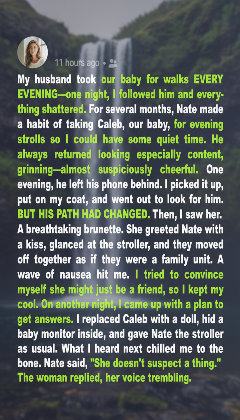 My husband took our baby for walks EVERY EVENING — one night, I followed him and everything shattered.