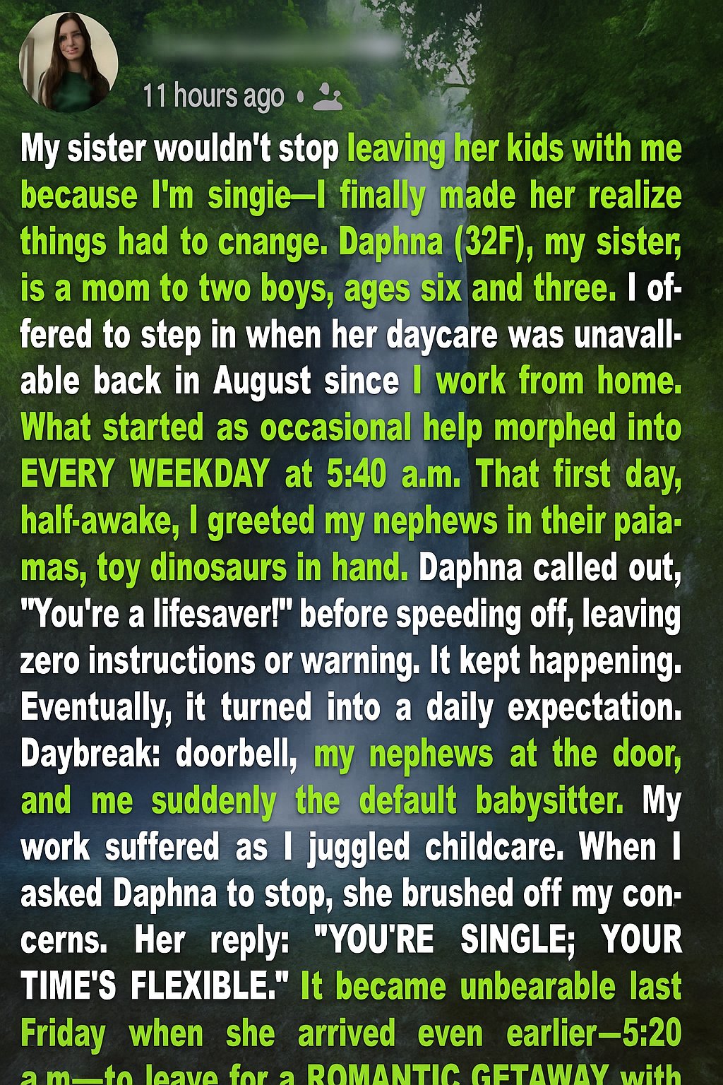 The first time, I was still half-asleep when the doorbell rang. I opened the door to find my nephews in pajamas, clutching toy dinosaurs, their mom already speeding down the street yelling, “You’re a lifesaver!”
