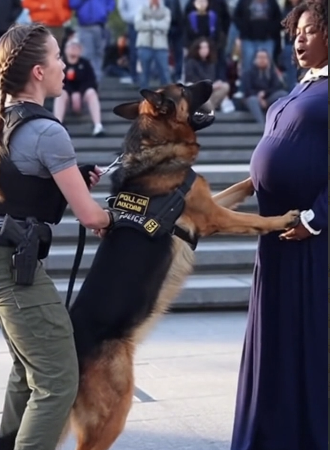 Police K9 Incident Sparks Panic After Dog Lunges at Pregnant Woman in Public Plaza