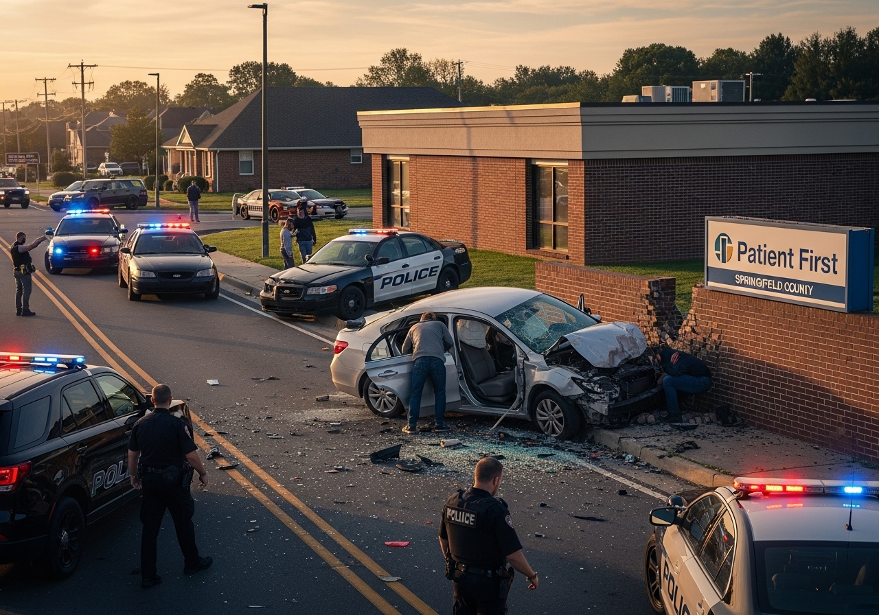 Delaware County saw another chaotic incident today after a stolen vehicle sped through Springfield, triggering a dangerous chain of collisions. The suspect behind the wheel smashed into four separate vehicles before losing control and crashing into a wall outside Patient First on Baltimore Pike.