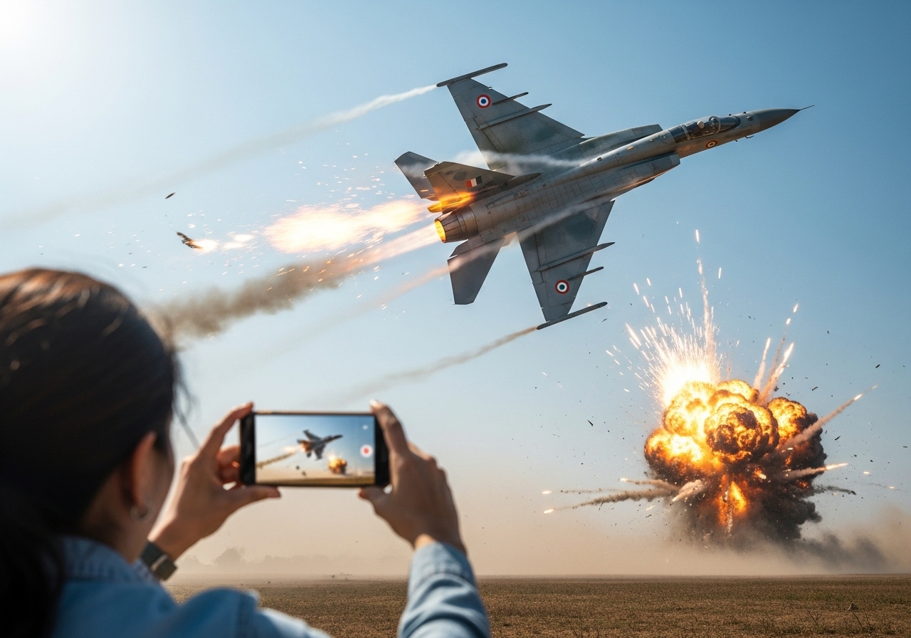 A dramatic incident unfolded this morning when an Indian Air Force fighter jet suffered a catastrophic malfunction and crashed moments after takeoff. The event, which sent shockwaves across social media within minutes, was captured in a terrifying 15-second handheld video recorded by a nearby woman.